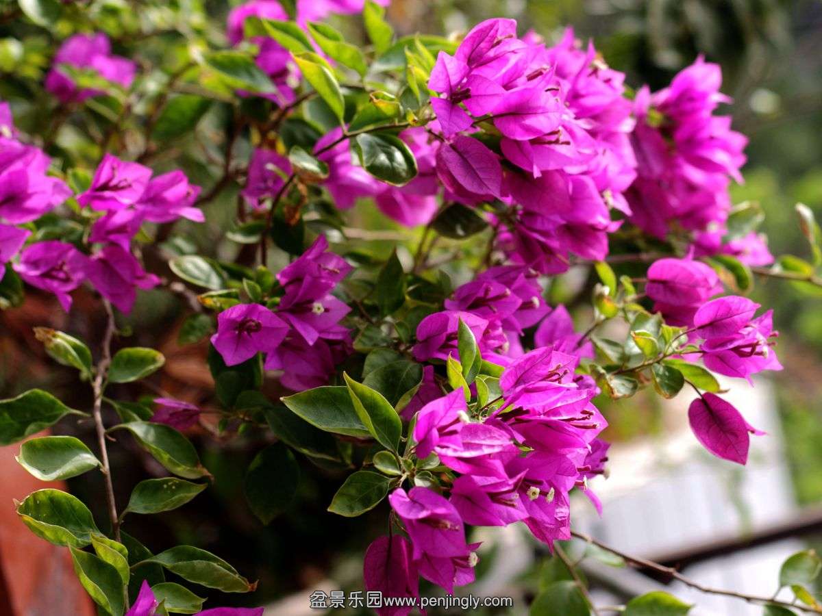 开花中的一盆紫色三角梅