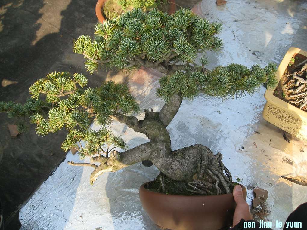 今天遇到朋友,到朋友的养桩的楼上去看看他的东西,朋友告诉我他刚从一个八十多岁的老人手里收了一批五针松和大阪,我对这些不内行,不过看看杆子的弯曲的确很有味道,整理一下还是很漂亮的。
