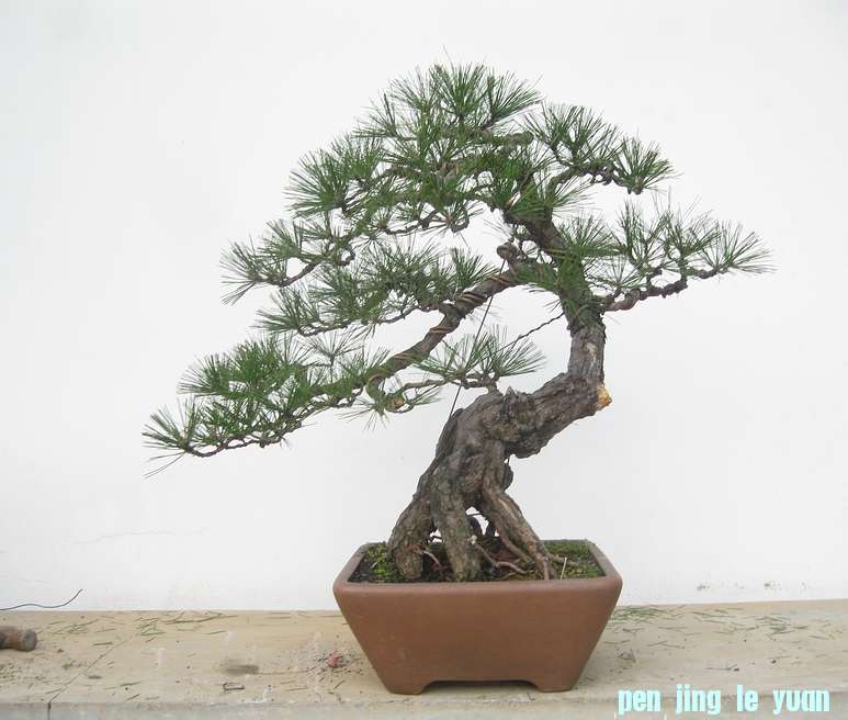 整体感觉有动势而不失重心,枝幅同树干比例协调,剪扎中很见功夫,因根脚大盆略显小了点。说错了请郑管指正。{:soso_e181:}