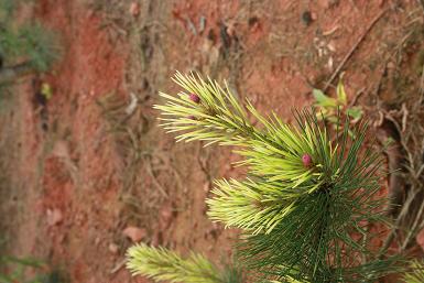 g.缺Fe:在缺素不太严重时,新叶会发生不同程度的失绿症。但在严重缺素时,针叶将呈亮黄色,并且不再形成芽。