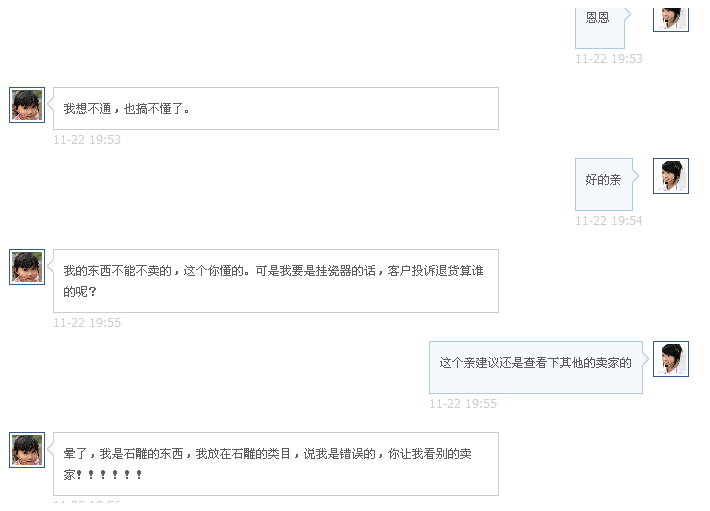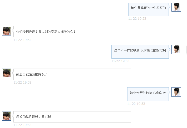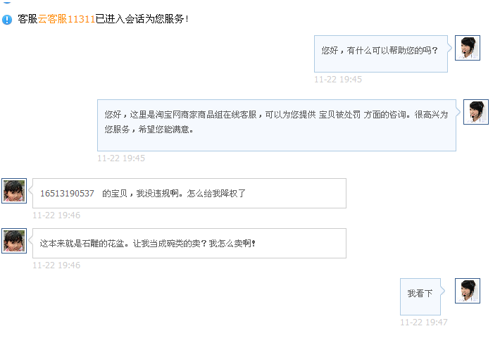 我呸他。。。。。这样脑残的客服这样脑残的系统 他推脱说是系统自己认定我的石盆放的类目有误的。。。。。归根结底还是他们那帮脑残搞出来的~!
