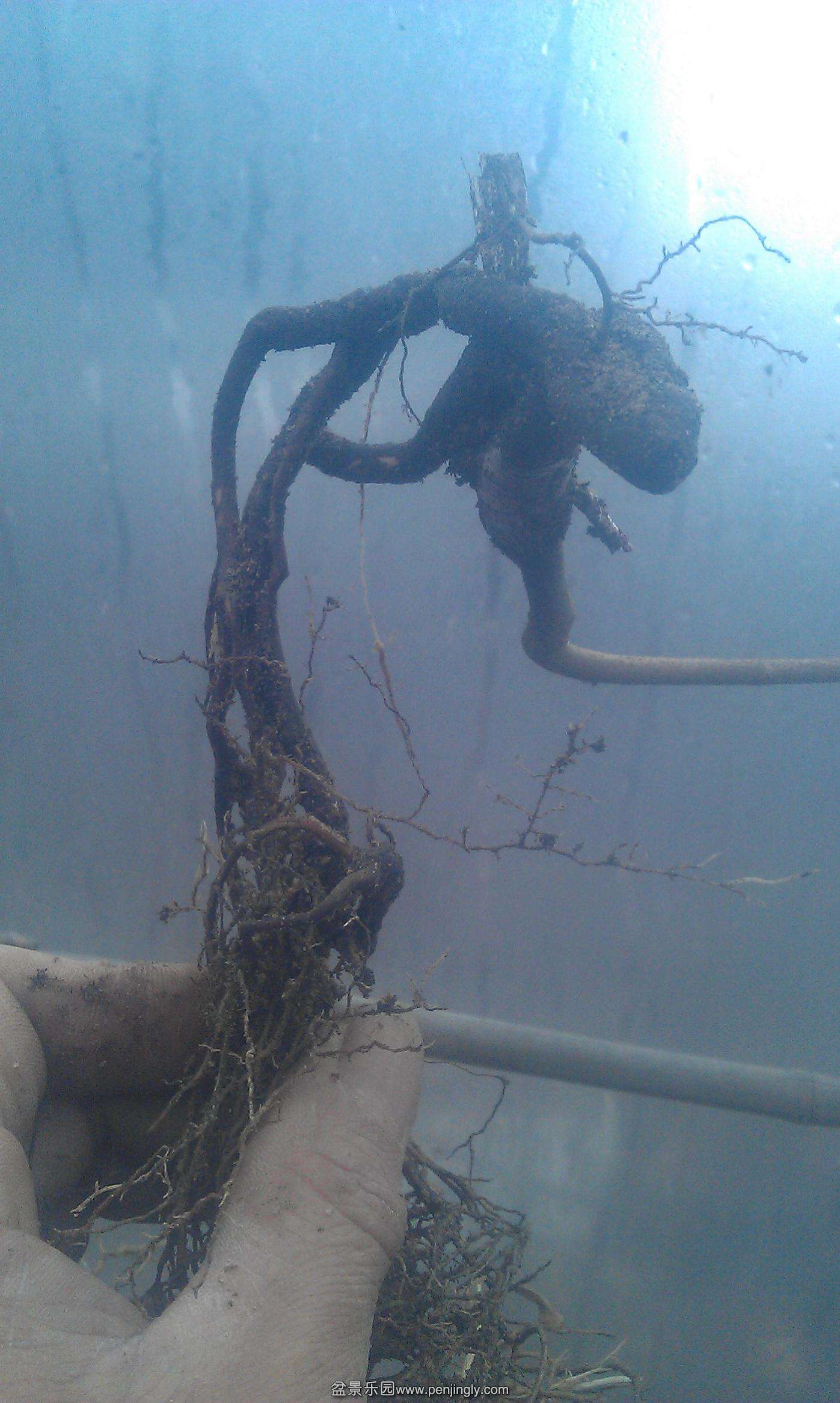 去年给大三角枫换盆,修剪下的根,看着挺美的,不舍得扔掉,就嫁接了一条跟和枝条,今天倒盆整理了一下