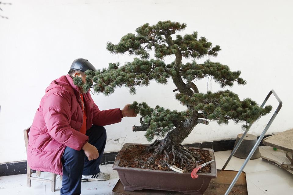 【今天改作的一株五针松,枝条郁郁,文质彬彬。山林作伴,松桂为邻】